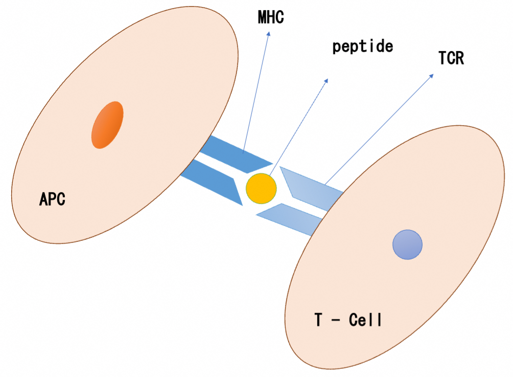 T-cell, an essential part of the adaptive immune system, is responsible for the recognition of these peptides. Another cell named as antigen presenting cell (APC) bind these peptides and present them to T-cell [1] (schematically shown in the figure).